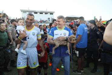 O prefeito de Palmas, Eduardo Siqueira Campos, participou no sábado, 16, da 7ª edição do Futebol Solidário, realizada no Estádio Nilton Santos, que reuniu craques como Cafu, Romário, Vampeta, Formiga, Pretinha e Vanderlei Luxemburgo. O evento atraiu milhares de torcedores e arrecadou, em balanço parcial, 90 toneladas de alimentos e roupas, que serão destinados a famílias em situação de vulnerabilidade.