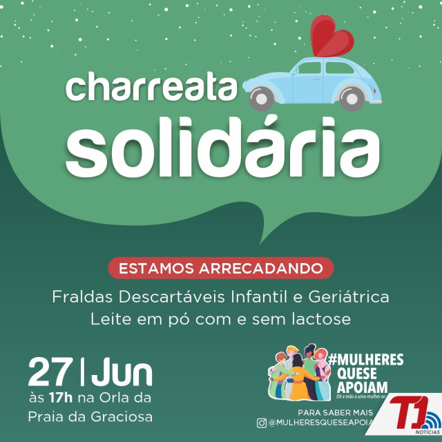 Acontece no próximo sábado, 27 de junho, a partir das 17 horas, na Praia da Graciosa, em Palmas, a primeira Chárreata Solidária. O evento será realizado pela iniciativa #MULHERESQUESEAPOIAM.