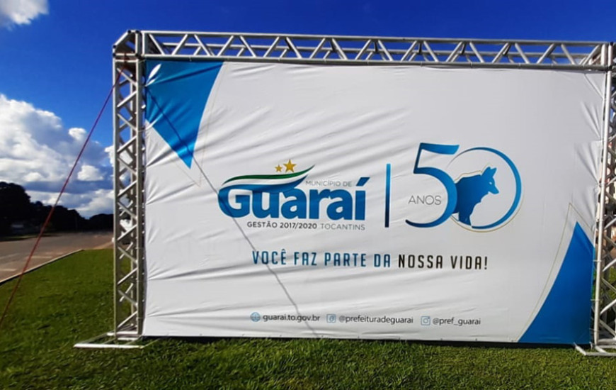 A Prefeitura de Guaraí instalou painéis de lona em ground, tamanho 5 x 3, nos pontos centrais do município, em comemoração ao 50º aniversário, com o tema: Guaraí 50 anos – Você faz parte da nossa vida.