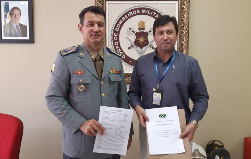 Na manhã desta quarta-feira, 18, no Quartel do Comando Geral (QGC), em Palmas, foi renovado o convênio entre a Infraero e o Corpo de Bombeiros Militar, no que se refere aos serviços especializados de salvamento e combate a incêndios em aeronaves nas instalações do Aeroporto Brigadeiro Lysias Rodrigues, na Capital, e passa a valer a partir de 1º de janeiro de 2020 e vai até o fim do ano.