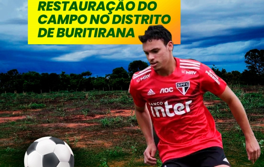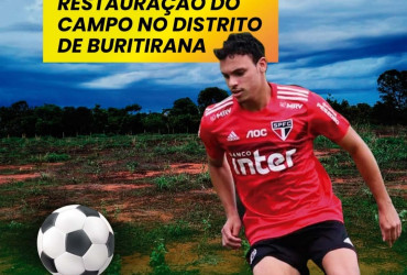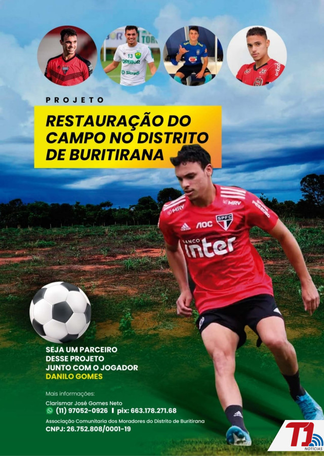 O jogador Danilo Gomes, natural de Palmas e atualmente atleta do São Paulo (SPFC), emprestado ao Cuiabá, onde disputa a série A, pede apoio em projeto para revitalização de campo de futebol em Buritirana.