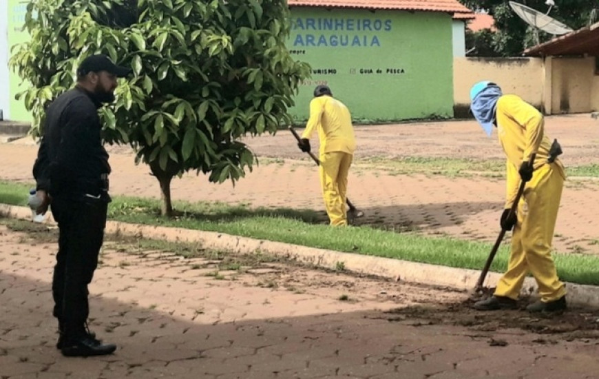 O juiz da Comarca de Araguacema, William Trigílio da Silva, e o diretor da Cadeia Pública de Araguacema, Jeferson Marinho, por meio da Secretaria de Estado da Cidadania e Justiça (Seciju), que é a pasta responsável pelo Sistema Penitenciário, atenderam a uma solicitação da Prefeitura para que os apenados pudessem trabalhar na limpeza das ruas da cidade.