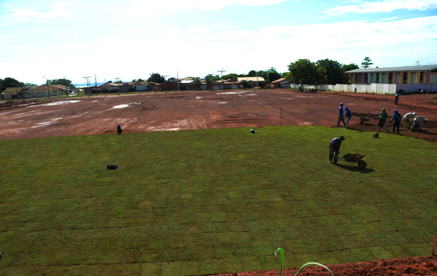 Pronto o campo de futebol terá 5.556 metros quadrados de área gramada apta para atender a comunidade na prática de atividades esportivas.
