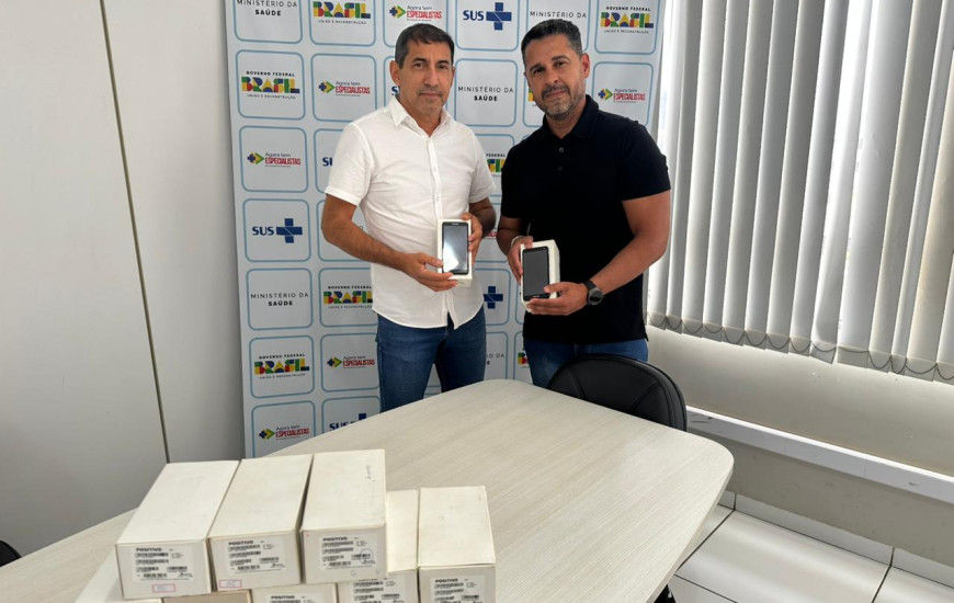 263 dispositivos móveis de coleta de dados foram entregues nesta quinta-feira, 14, aos Agentes Comunitários de Saúde de Palmas, pelo Ministério da Saúde. Semelhantes a smartphones, os aparelhos serão utilizados com o aplicativo e-SUS Território, o que permite o registro mais rápido e preciso das visitas domiciliares realizadas pelos profissionais. A entrega contou com a presença do superintendente da Atenção à Saúde da Semus, Andreis Vicente da Costa, do superintendente estadual do Ministério da Saúde no Tocantins, Relmivam Rodrigues Milhomem, e de parte da equipe técnica da Semus.