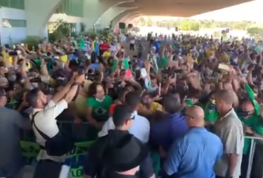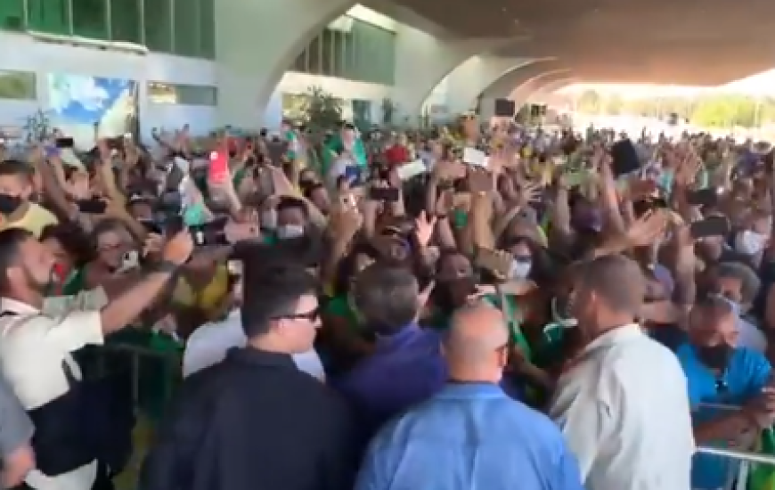Imagens que chegaram ao portal mostram que um grupo foi criado no aplicativo Whatsapp mobilizando as pessoas para que fossem ao aeroporto fazer a recepção ao presidente. O nome do grupo é “Bolsonaro em Palmas” e tem cerca de nove administradores, entre eles, pessoas conhecidas do meio político palmense, que ignoraram as regras de distanciamento social determinadas pela Organização Mundial de Saúde (OMS) e pelo Ministério da Saúde (MS), como medida preventiva à pandemia da Covid-19. Sem mascára, o presidente Jair Bolsonaro se juntou à multidão de pessoas na porta do aeroporto de Palmas.