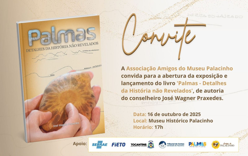 A Associação Amigos do Museu Palacinho realiza, nesta quinta-feira, 16, às 17h, a abertura da exposição e o lançamento do livro “Palmas – Detalhes da História não Revelados”, de autoria do conselheiro José Wagner Praxedes. O evento será no Museu Histórico Palacinho, na Capital.