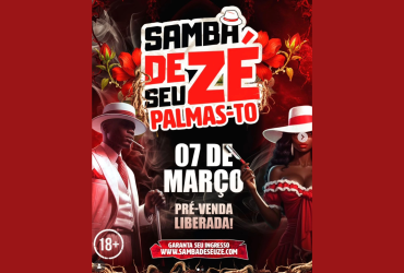Neste sábado, 7 de março, Palmas recebe a 1ª edição do Samba de Seu Zé, a partir das 15h, no Lions Clube (Q.208 Sul, Alameda 5, Plano Diretor Sul).