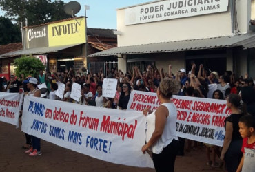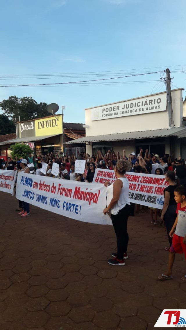 Uma manifestação foi realizada por moradores de Almas na tarde desta sexta-feira, 26, na porta do Fórum do Município. O ato foi organizado pela prefeitura em conjunto com moradores da cidade após o Portal T1 Notícias ter publicado um editorial da advogada Cláudia Rógeria Fernandes alertando sobre o fechamento da Comarca de Almas.