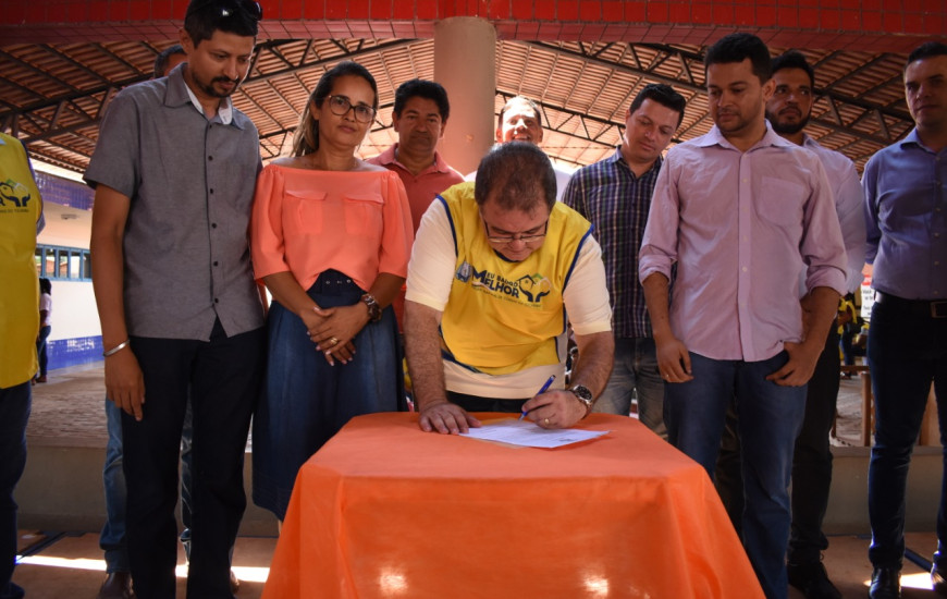 Moradores do Bairro Santo Antônio, em Colinas do Tocantins, serão beneficiados com mais uma unidade de ensino. A Ordem de Serviço (OS), para a construção de uma escola de 12 salas, mais quadra poliesportiva foi assinada na manhã desta sexta-feira, 6, durante a quinta edição do projeto Meu Bairro Melhor.