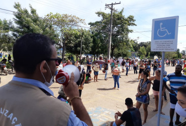 A Prefeitura de Miracema do Tocantins, por meio da Vigilância Sanitária Municipal e com o apoio da Polícia Militar, mesmo não sendo de sua responsabilidade, auxilia os serviços da Caixa Econômico Federal, na manhã desta quinta-feira, 30, na organização da fila dos beneficiários do auxílio emergencial, disponibilizado pelo Governo Federal em virtude da pandemia do Coronavírus.