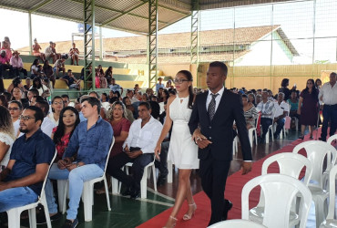 Um dia de festa e comemoração para 110 casais que oficialmente disseram o tão sonhado sim, na manhã desta quinta-feira, 19, em solenidade de Casamento Comunitário, realizada pela prefeitura de Dianópolis em parceria com a Associação dos Registradores de Pessoas Naturais do Tocantins (Arpen). A solenidade aconteceu na quadra de esportes do Colégio João D’Abreu, com presença de autoridades, participação de padrinhos e dos noivos, que fizeram os votos diante familiares e amigos em um momento de felicidade e emoção.