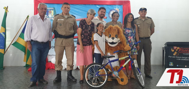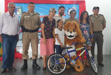 Em primeiro lugar, com melhor texto, a aluna do Colégio João D’Abreu, Ana Júlia Cardoso Ceciliano, que recebeu uma bicicleta em reconhecimento pela produção que exalta o trabalho do Proerd e fala sobre a resistência às drogas.