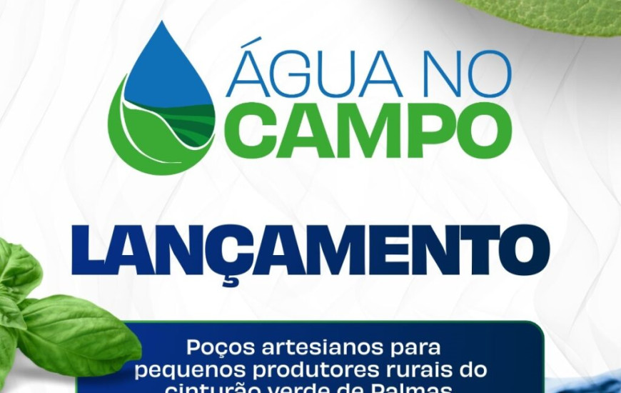 Será lançado nesta sexta-feira, 5, o projeto "Água no Campo – Poços Artesianos para Agricultura Familiar de Palmas, iniciativa orçada em R$ 20 milhões que contemplará familiares com a perfuração de poços artesianos. O evento será no auditório da Escola Estadual Elizângela Glória Cardoso, a partir das 9h, e contará com a presença do ministro da Pesca e Aquicultura, André de Paula, do senador Irajá Silvestre – autor da emenda destinada ao projeto – e do prefeito Eduardo Siqueira Campos.