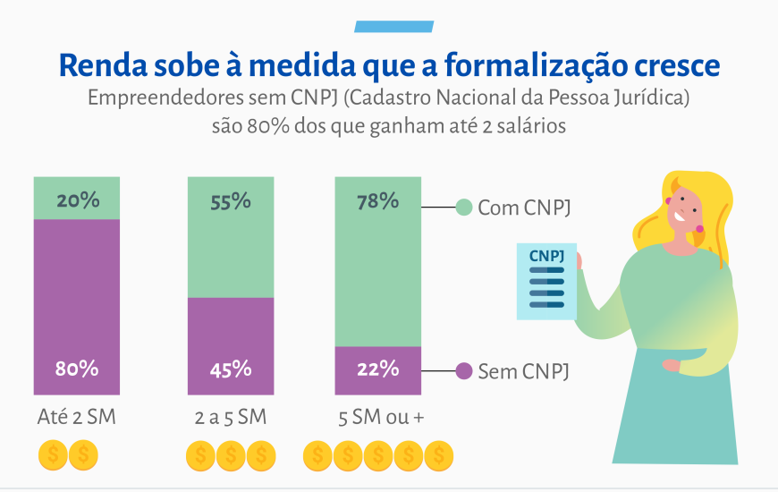 De acordo com levantamento feito pelo Sebrae com base em dados da PNAD do 2º trimestre de 2023, quase 20 milhões de brasileiros são donos de negócios com faturamento mensal até 2 SM. A pesquisa retrata também que o rendimento aumenta à medida que o empreendedor se qualifica.