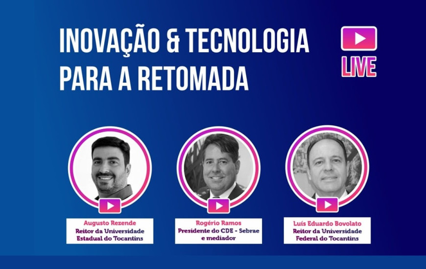 Com o tema “Inovação e Tecnologia para a retomada”, o debate será mediado pelo presidente do Conselho Deliberativo Estadual do Sebrae (CDE), Rogério Ramos, e transmitido nos canais do YouTube e Facebook do Sebrae Tocantins a partir das 18 horas.