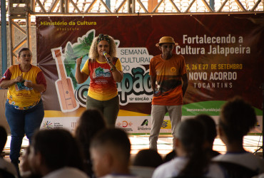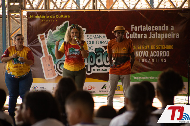 As atividades da 12ª Semana Cultural do Jalapão seguem nesta sexta-feira, 26, na Escola Municipal Ruidelmar Limeira Borges, com a realização de oficinas e apresentações musicais com Núbia Dourado e Missin da Viola de Buriti, além de uma mostra de talentos dos estudantes. Realizada nesta quinta-feira, 27, no Colégio Estadual Professora Eliacena Moura Leitão, em Novo Acordo, situado a cerca de 90 km da capital, a abertura da semana encantou estudantes e comunidade com uma verdadeira imersão na cultura jalapoeira e saberes tradicionais, promovendo uma interconexão com a Suça de Natividade e o tambor de barro de Porto Nacional.