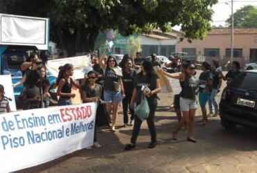 Professores da rede municipal de ensino entraram em greve nesta quarta-feira, 4. Segundo informações do Sintet, os educadores realizaram uma caminhada pelas principais ruas do município para reivindicar o pagamento de salários atrasados.