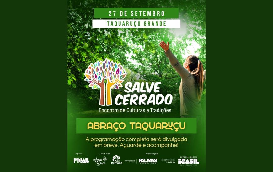 Setembro é o mês do Cerrado, o segundo maior bioma do País. Para celebrar essa riqueza natural e, ao mesmo tempo, chamar atenção para os desafios da sua preservação, Taquaruçu Grande recebe, neste sábado, 27, o “Salve Cerrado! Encontro de Cultura e Tradições dos Povos do Cerrado”, que acontece em conjunto com o já tradicional “Abraço ao Taquaruçu”.