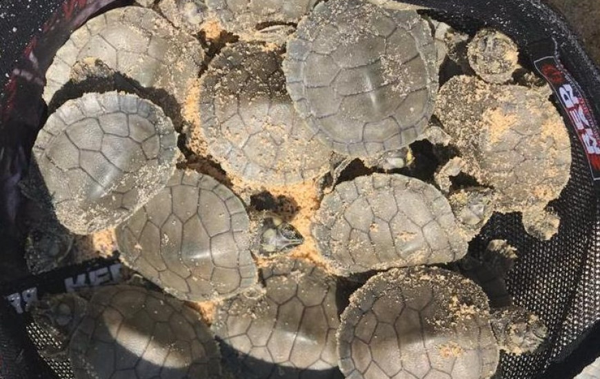 Após quebrar a casca do ovo, os filhotes ficam expostos aos predadores e sem a defesa da mãe. “A tartaruga põe os ovos e vai embora. Quando os ovos eclodem, os predadores são atraídos pelo cheiro do umbigo dos filhotes. Por isso, eles serão recolhidos e ficarão no berçário até a cicatrização do umbigo e o desenvolvimento dos cascos”, explicou.