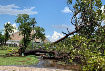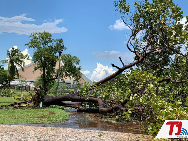 Os estragos da chuva que caiu no início da tarde desta terça-feira, 28, em Palmas, ainda estão sendo levantados, mas nas redes sociais muitas imagens estão sendo compartilhadas de árvores caídas em várias partes da cidade, incluindo a Praça dos Girassóis, telhados arrancados e a decoração natalina da Vila do Natal no Espaço Cultural e na entrada da Assembleia Legislativa.
