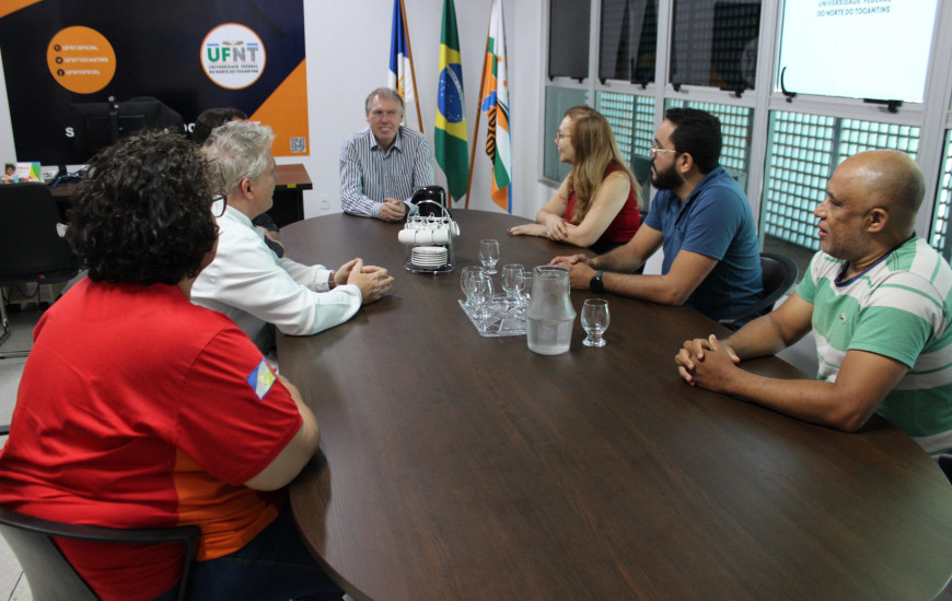 A reunião para firmar a parceria ocorreu no gabinete da Reitoria e contou com a presença do reitor professor Airton Sieben, da pró-reitora de Extensão, professora Rejane Medeiros, do coordenador do projeto, professor Roberto Antero, e dos representantes da iniciativa, Jose Ronaldo Ferreira Pereira Gomes, Evilane Leão Cordeiro, Pe. José Carlos da Escola Paroquial, Murilo Henrique Souza de Paula e professora Antônia Marcia Duarte Queiroz.
