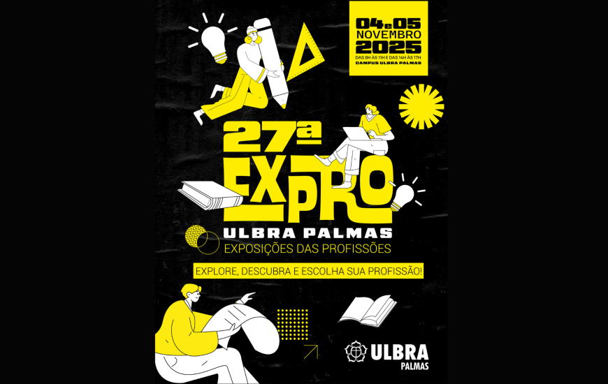 A Ulbra Palmas promove, nos dias 4 e 5 de novembro, a 27ª edição da Exposição das Profissões (Expro), evento voltado a estudantes do ensino médio que se preparam para o Enem e buscam orientação sobre qual carreira seguir.