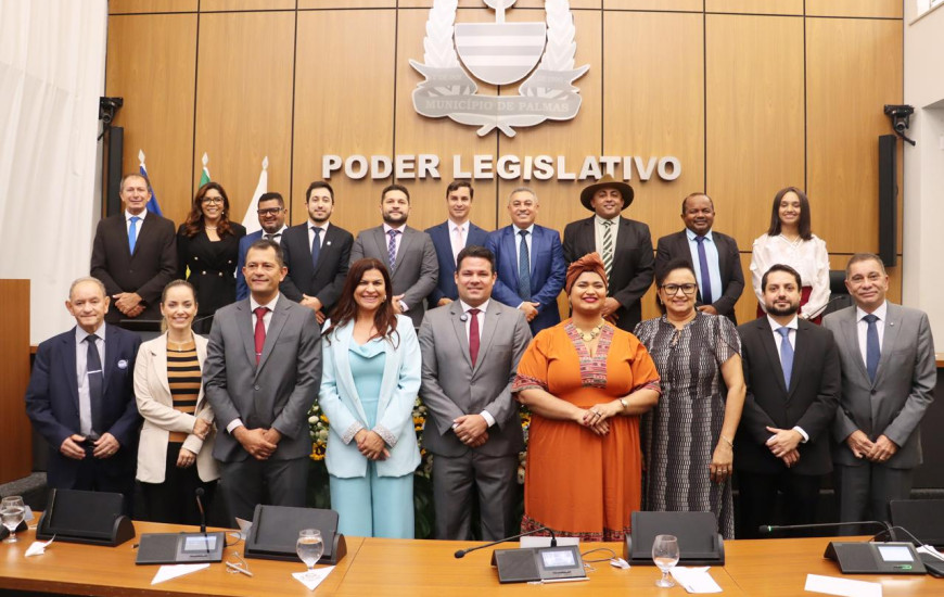 A mesa de honra da Sessão Especial da 10ª Legislatura contou com a presença do vice-prefeito, Carlos Velozo (Agir), do presidente da Assembléia Legislativa do Tocantins, Amélio Cayres (Republicanos), do secretário-chefe da Casa Civil, Deocleciano Filho, da vice-presidente da OAB/TO, Larissa Rosenda, e dos vereadores Thiago Borges (PL) e Zé Branquim (PP).
