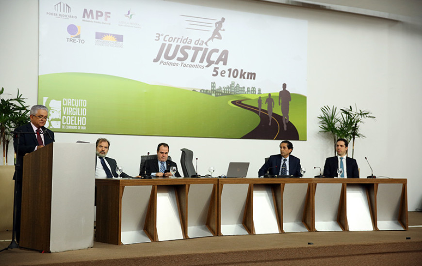 A 3ª edição da Corrida da Justiça foi lançada na tarde desta quinta-feira, 14, no auditório do Tribunal de Justiça do Tocantins. Representantes dos cincos órgãos parceiros do evento assinaram um termo de cooperação para realização da prova. A competição integra o circuito Virgílio Coelho de Corridas de Rua. Com largada e chegada em frente à sede do Tribunal de Justiça, a prova é noturna e conta com duas opções de trajeto: cinco e dez quilômetros. Este ano, a competição está marcada para o dia 20 de outubro.