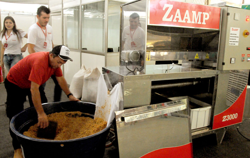O tema da Agrotins 2018, Agroindústria Sustentável, incentiva a apresentação das novidades do setor para pequenos, médios e grandes produtores rurais. Um exemplo é a esmagadora de soja para farelo e óleo com alto padrão de qualidade da empresa Zaamp. A feira teve início na terça-feira, 8, e segue até o sábado, 12, no Centro Agrotecnológico de Palmas.A esmagadora de soja, que é uma invenção da empresa Zaamp do Estado do Paraná, permite a extração do farelo, produto para alimentação humana e animal. Além da soja, a máquina esmaga oleaginosas como mamona, girassol, amendoim, linhaças, entre outras.De acordo com o representante comercial da empresa, Zaqueu Galvão, a esmagadora é altamente eficiente e sustentável, pois possibilita a agregação de valor ao produto. “O processamento do farelo para produzir a ração animal, reduz o custo em 10 a 30%, elevando a absorção de nutrientes em até 20% na alimentação”, ressaltou. O sistema de moagem garante maior produtividade e diminuição do consumo de energia, o atrito é feito sementes/sementes o que gera uma diminuição de energia. O óleo bruto, extraído a frio do equipamento, contém todas as propriedades, mantendo-o in natura. Com isso, esse produto pode ser utilizado para formulação de rações, na agricultura (pulverização), na indústria de cosméticos (sabão) e para produção de biodiesel. Já o farelo é rico em proteína, sendo a melhor opção para enriquecer, com altos teores de proteína, a ração de animais, fortalecendo a produção bovina, suína e avícola.