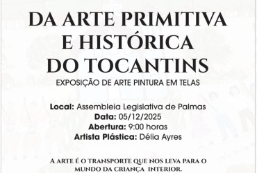 A artista plástica Délia Ayres leva sua arte para a Assembleia Legislativa do Tocantins (Aleto). Com o lema “A arte é o transporte que nos leva ao mundo da criança interior”, a exposição de pinturas em tela de Délia Ayres será realizada no hall da Aleto nesta sexta-feira, 5, a partir das 9 horas. Por meio da arte Naif (pintura primitiva), Délia retrata suas lembranças de infância e juventude no Tocantins, bem como as dos povos tradicionais.