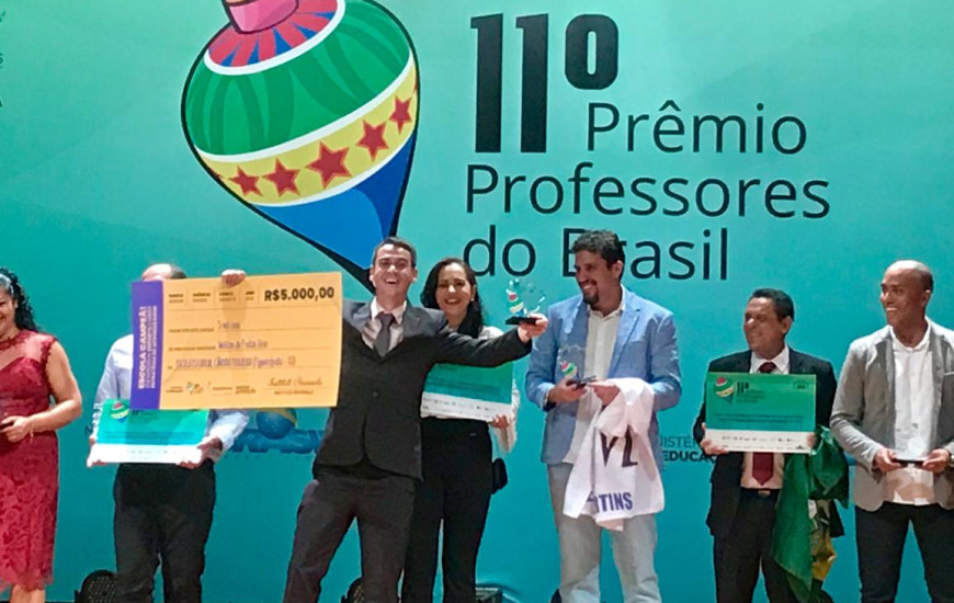 O professor de educação física, Welinton de Freitas Silva, participou na quinta-feira, 29, da cerimônia de premiação da 11ª edição do Prêmio Professores do Brasil. A iniciativa do Ministério da Educação (MEC) visa reconhecer as práticas desenvolvidas em sala de aula que contribuem para a qualidade da educação básica no Brasil. Servidor efetivo da Secretaria de Estado da Educação, Juventude e Esportes desde 2011, Welinton Silva trabalha na Escola Estadual Cândido Figueira e foi o único representante tocantinense premiado neste ano. O docente desenvolveu o projeto O Brasil não é o país só do futebol como a grande maioria prega por aí, que envolve 14 turmas e 365 alunos. O professor destacou a importância de trabalhar com foco no futuro dos alunos. “Tenho certeza de que é na sala de aula que a gente contribui para formar cidadãos críticos, conscientes e capazes de lutar por seus ideais. Ver a mudança acontecer a partir das sementes plantadas, crescendo e dando frutos é o que nos motiva a continuar”, enfatizou. O professor de educação física foi premiado com R$ 5.000,00 na categoria Esporte como Estratégia de Aprendizagem. Weliton Silva disse que é gratificante estar entre os selecionados do País e o dinheiro será revertido em material esportivo para a escola. O ministro substituto da Educação, Henrique Sartori, esteve na premiação e ressaltou a importância de se destacar as boas ações desenvolvidas nas escolas de todo o país. A motivação para o projeto surgiu após perceber que parte dos alunos não se interessavam por Futebol. Diante disso, o professor incluiu outras modalidades esportivas nas aulas como Atletismo, Badminton, Basquete, Handebol, Tênis de Mesa, Vôlei e Xadrez. O resultado superou as expectativas. Os alunos aprenderam novos esportes e passaram a ter mais consciência sobre a importância da prática esportiva para o bem-estar físico e mental. O trabalho rendeu vagas na disputa dos Jogos Escolares do Tocantins (Jets). A edição 2018 do Prêmio Professores do Brasil reconheceu os projetos de 30 professores em seis categorias: Creche, Pré-escola, Ensino fundamental, dividido em três etapas, e Ensino médio, além de temáticas especiais, tendo o esporte como estratégia de aprendizagem.
