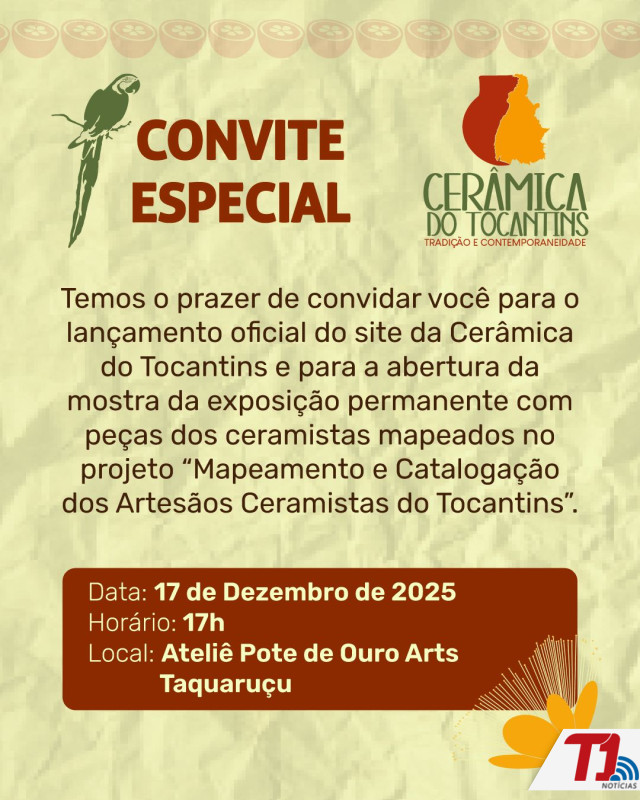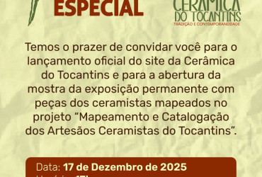 O Tocantins dá um importante passo na valorização de sua cultura e de seus saberes tradicionais com o lançamento oficial do Site da Cerâmica do Tocantins, que será apresentado ao público nesta quarta-feira, dia 17, às 17 horas, no Ateliê Pote de Ouro Arts, em Taquaruçu. O evento marca também a divulgação dos resultados do primeiro mapeamento e catalogação de ceramistas do estado, uma iniciativa inédita que reconhece, registra e projeta a cerâmica tocantinense como patrimônio cultural vivo.