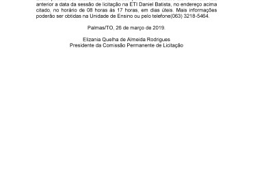 Convite da Associação Comunidade Escola (ACE) da Escola Municipal de Tempo Integral Daniel Batista para Chamada Pública para aquisição de gêneros alimentícios para areferida unidade de ensino.