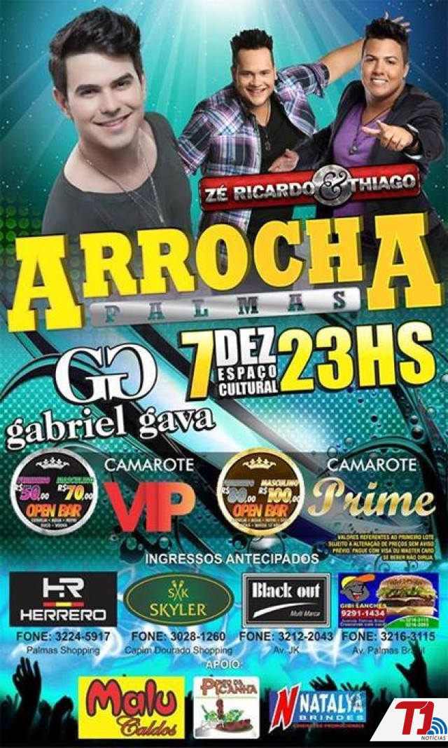 Na capital acontece neste sábado, 07 o Arrocha Palmas como o show do cantor sertanejo Gabriel Gava e da dupla Zé Ricardo e Thiago. O evento será realizado no Espaço Cultural a partir das 23h.