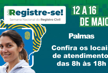 Começa nesta segunda-feira, 12, e vai até sexta-feira, 16, em Palmas, a 3ª edição da Semana Nacional do Registro Civil – Registre-se!. O evento acontece em todos os estados do País e no Distrito Federal. O objetivo é levar dignidade por meio do acesso à documentação básica.