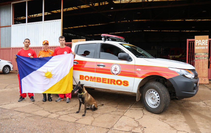 Além do sargento Raphael Mollo e o cabo Alef Teles, a corporação está enviando também a cadela Sky, que é a primeira no Norte do Brasil com certificação internacional em buscas em áreas colapsadas.