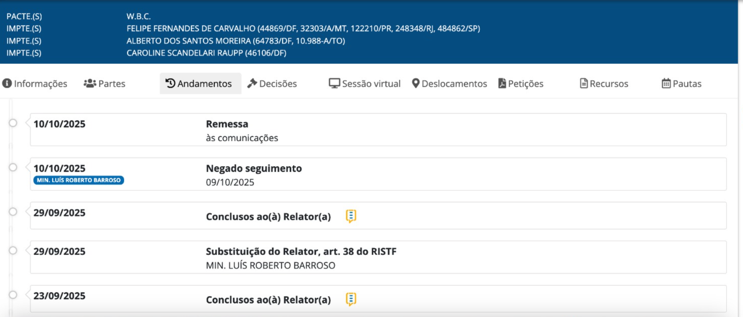 O habeas corpus havia sido extinto anteriormente por decisão do ministro Edson Fachin, que considerou o pedido prejudicado. A defesa então interpôs um agravo, buscando que o caso fosse submetido ao colegiado. Com a negativa de Barroso, esse novo pedido não será redistribuído nem levado a julgamento pela turma.