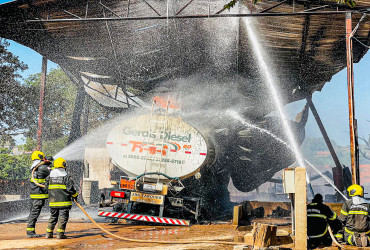Com a ação do fogo e a alta temperatura, a estrutura onde a primeiro caminhão estava acabou caindo sobre o veículo. Os demais foram retirados antes que as chamas se alastrassem, evitando maiores prejuízos e riscos. Enquanto isso, os bombeiros faziam o resfriamento dos tanques em solo, evitando que eles também fossem atingidos.