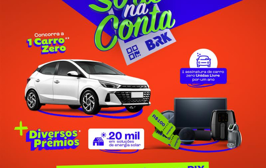 A campanha “Sorte na Conta BRK” teve início em 23 de setembro de 2024 e segue até 25 de fevereiro de 2025. Para mais informações, acesse o regulamento no site da promoção: sortenacontabrk.com.br.