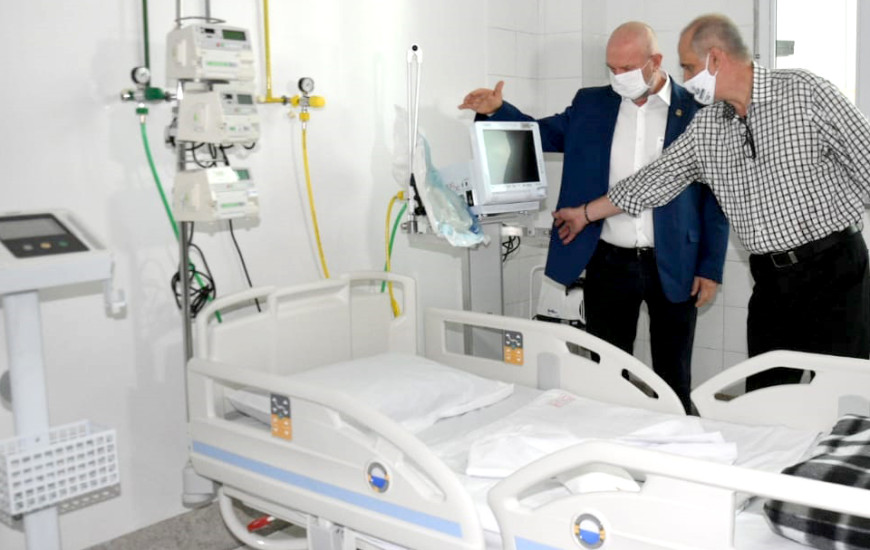 Os leitos são equipados com ventiladores, respiradores mecânicos, monitores multiparâmetros e carrinhos de emergência.