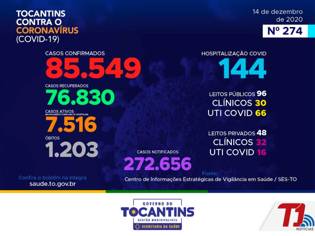 Nesta segunda-feira, 14 de dezembro, o Tocantins contabilizou 175 novos casos de Covid-19. Deste total, 57 foram registrados nas últimas 24 horas e o restante por exames coletados em dias anteriores e que tiveram seus resultados liberados na data de ontem.