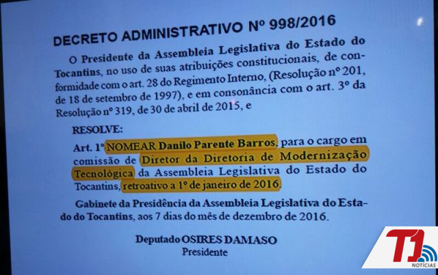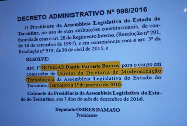 Durante a coletiva, o delegado Guilherme Rocha Martins, titular da DRACMA, explicou que através de um decreto publicado durante a gestão anterior da Casa, Danilo Parente Barros foi nomeado para o cargo de diretor da Diretoria de Modernização Tecnológica da Assembleia, mas nunca exerceu a função. Conforme depoimento prestado à polícia, Danilo chegou a assumir que não conhecia nada de Tecnologia da Informação.