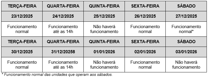 Os Correios informaram que não haverá atendimento nas agências no dia 1º de janeiro de 2026, feriado da Confraternização Universal. No dia 31 de dezembro, o funcionamento das unidades ocorre em horário diferenciado, conforme calendário divulgado pela estatal.
