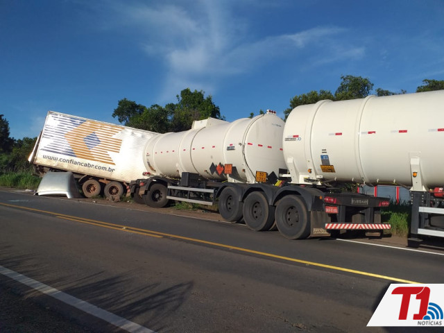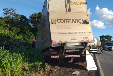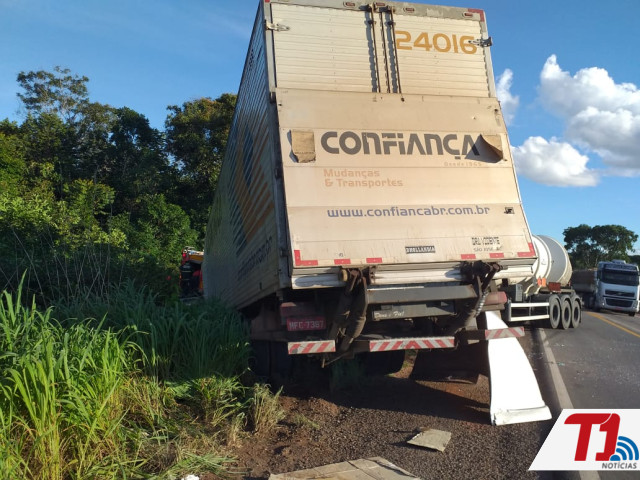 Segundo o Corpo de Bombeiros, o acidente ocorreu por volta das 16h30, envolvendo uma carreta bitrem com placas de São José (SC), do tipo tanque, e um caminhão baú com placas de Alvorada (TO).