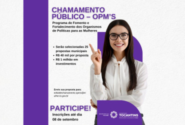 O Edital de Chamamento Público nº 03/2025 reforça o compromisso do Governo do Tocantins com a descentralização das políticas públicas para mulheres, proporcionando condições mínimas para atuação efetiva dos OPM’s. Além de fomentar a gestão local, o programa contribui para a promoção da igualdade de gênero, respeito à diversidade e ampliação da participação feminina nas decisões públicas.