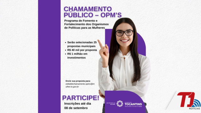 Com o objetivo de fortalecer os Organismos de Políticas para as Mulheres (OPM’s) nos municípios e apoiar financeiramente a implementação de ações estratégicas locais voltadas à promoção da autonomia e da igualdade de gênero, o Governo do Tocantins, por meio da Secretaria de Estado da Mulher (SecMulher), publicou nesta semana o Edital de Chamamento Público nº 03/2025. Conforme o documento, será disponibiliado um total de R$ 1 milhão, com R$ 40 mil para cada uma das 25 propostas selecionadas.