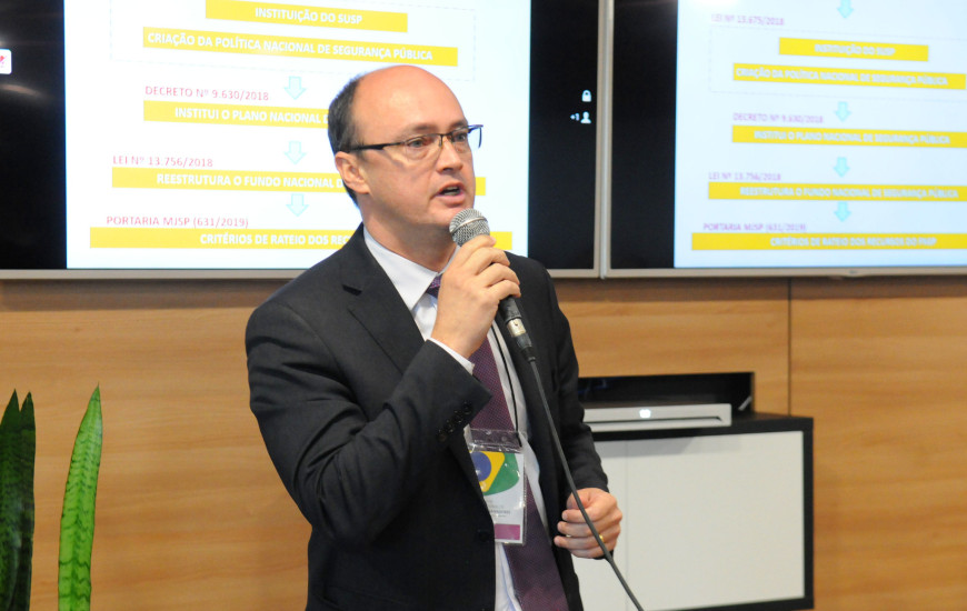 Acompanhando o governador Mauro Carlesse, o secretário Cristiano Sampaio, que representou o Colegiado Nacional de Secretários de Segurança Pública, fez uma apresentação durante o Fórum, onde demonstrou dados sobre os investimentos feitos na segurança pública nos últimos anos.