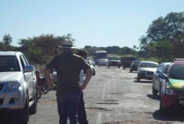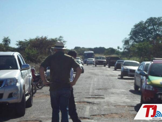 Os manifestantes bloquearam a rodovia na altura da ponte sobre o Rio Peixe e mais de 100 veículos estão parados desde ontem no local, sendo permitida a passagem apenas de ambulâncias e viaturas da polícia, o que tem gerado engarrafamento no local nos dois sentidos da via. Estão parados no local principalmente de caminhões e motoristas de outros estados.