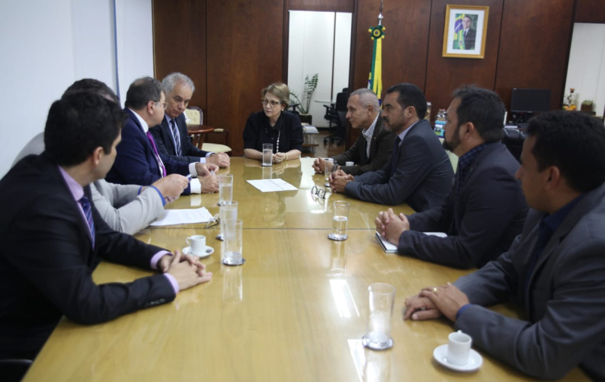 A ministra da Agricultura, Pecuária e Abastecimento, Tereza Cristina, confirmou presença na Feira de Tecnologia Agropecuária do Tocantins (Agrotins), que será realizada de 5 a 9 de maio, no Centro Agrotecnológico de Palmas/TO, e que tem como tema o Cerrado Sustentável. O convite foi feito pessoalmente à ministra na noite desta quarta-feira, 19, pelo secretário da Agricultura, Pecuária e Aquicultura do Estado, César Halum. “Ano passado fiz o compromisso de ir, mas uma viagem internacional me impediu de estar presente. Estou com essa dívida com vocês e agora, em 2020, estarei presente”, disse Tereza.