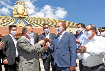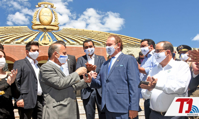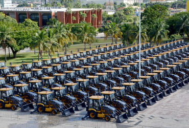 O governador do Estado do Tocantins, Mauro Carlesse, recebeu nesta segunda-feira, 29, de forma simbólica, 220 dos 232 equipamentos e máquinas pesadas que serão repassados ao Governo do Tocantins pelo ministro do Desenvolvimento Regional, Rogério Simonetti Marinho. O evento ocorreu no Palácio Araguaia e contou com a presença do senador Eduardo Gomes, de prefeitos, deputados estaduais e federais, e demais autoridades políticas.